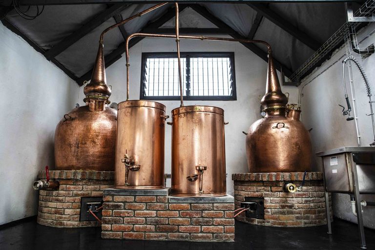 Brendan hat zwei handgemachte kupferne Pot Stills ausgesucht. Diesen hat er einen Namen gegeben: Christoir mit 1.000 Liter Kapazität und Broc, mit 800 Liter Kapazität. Diese Brennblasen sind die einzigen Brennblasen in Irland mit einer direkten Befeuerung. Dies gibt der Destillerie eine gewisse Nostalgie, da Poitin und Whiskey hier auf dem traditionellen Weg hergestellt wird, wie früher in den Moune Mountains, nur diesmal ist die Herstellung legal.